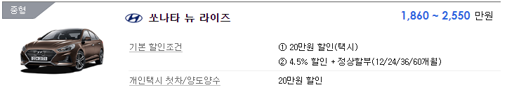 개인택시 첫차/양도양수 : 쏘나타 뉴라이즈 택시, 그랜저 택시