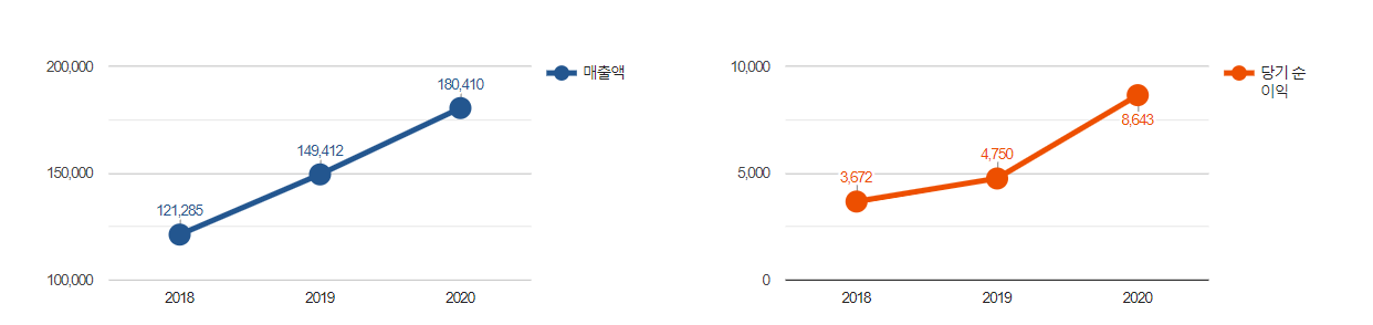 제습기로 유명한 회사 위닉스입니다. 현재 위닉스의 주가는 2만원 초반대에 형성되어 있습니다. 제습기 뿐만 아니라 의류건조기 등도 제조하고 있으며, 최근에는 수출 비중이 늘어났습니다. 각종 가전제품을 제작하면서 여름에만 집중되었던 매출 구도 역시 개선되고 있는 기업 중 하나입니다. 다만, 2020년 코로나로 인해서 매출이 부진했습니다. 올해는 전년 대비 수출이 늘어났기 때문에 매출의 향상을 기대해 볼 수 있겠습니다.